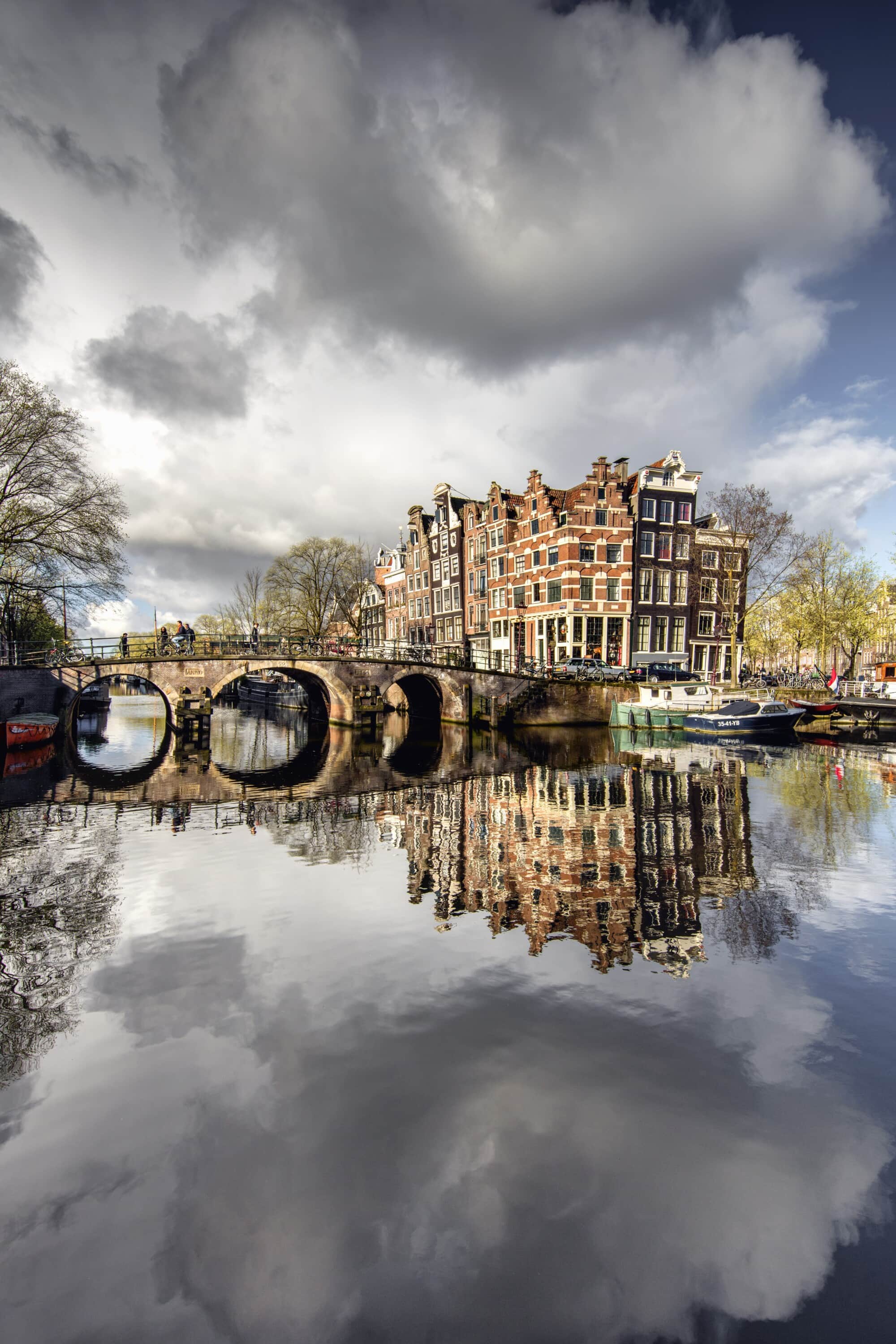 The Netherlands, Amsterdam, 17th-century canal houses along the Brouwersgracht canal. The 17th-century canal ring has been on the UNESCO World Heritage List since 2010.