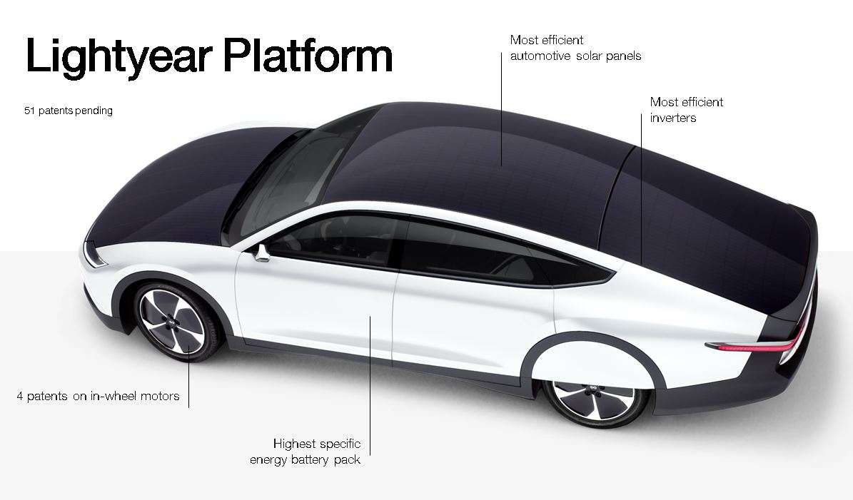 Este vehículo tiene una capacidad propia para generar energía solar a bordo, lo que le convierte en un vehículo altamente eficiente, generando menores emisiones de CO2 tanto en su fabricación como en su vida útil. Esto permite tener menores costes operativos y alcanzar una mayor autonomía de la red eléctrica comparado con cualquier otro vehículo eléctrico conocido hasta ahora.