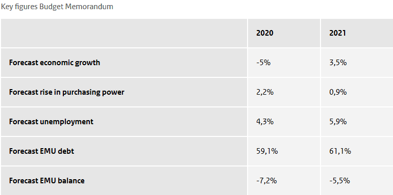 Se espera la contracción económica más fuerte desde la Segunda Guerra Mundial. La economía neerlandesa se contraerá un 5% en 2020, para luego crecer en 2021 un 3,5%. Hay que señalar que estas previsiones son ligeramente mejor de lo esperado hace unos meses, en parte debido a las inversiones del fondo de crecimiento de Wopke-Wiebes, nombres de los ministros de Finanzas y Economía de Países Bajos.