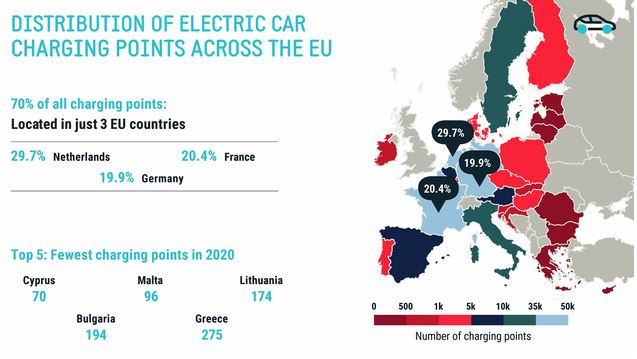 En 2020, en Países Bajos el 21% de todos los automóviles vendidos fueron vehículos eléctricos de batería (BEV) y el 4% eran vehículos eléctricos híbridos enchufables (PHEV). Este alto porcentaje, particularmente de BEV, es una muestra de los esfuerzos realizados para impulsar este mercado. De hecho, las políticas gubernamentales implementadas durante los últimos años han estado orientadas a incentivar el uso de vehículos eléctricos. Según la asociación de la industria ACEA, Países Bajos cuenta, con mucho, con la mayor cantidad de puntos de carga para vehiculos eléctricos de la Unión Europea. Alrededor del 30% de todas las estaciones de carga dentro de la UE están ubicadas en Países Bajos.